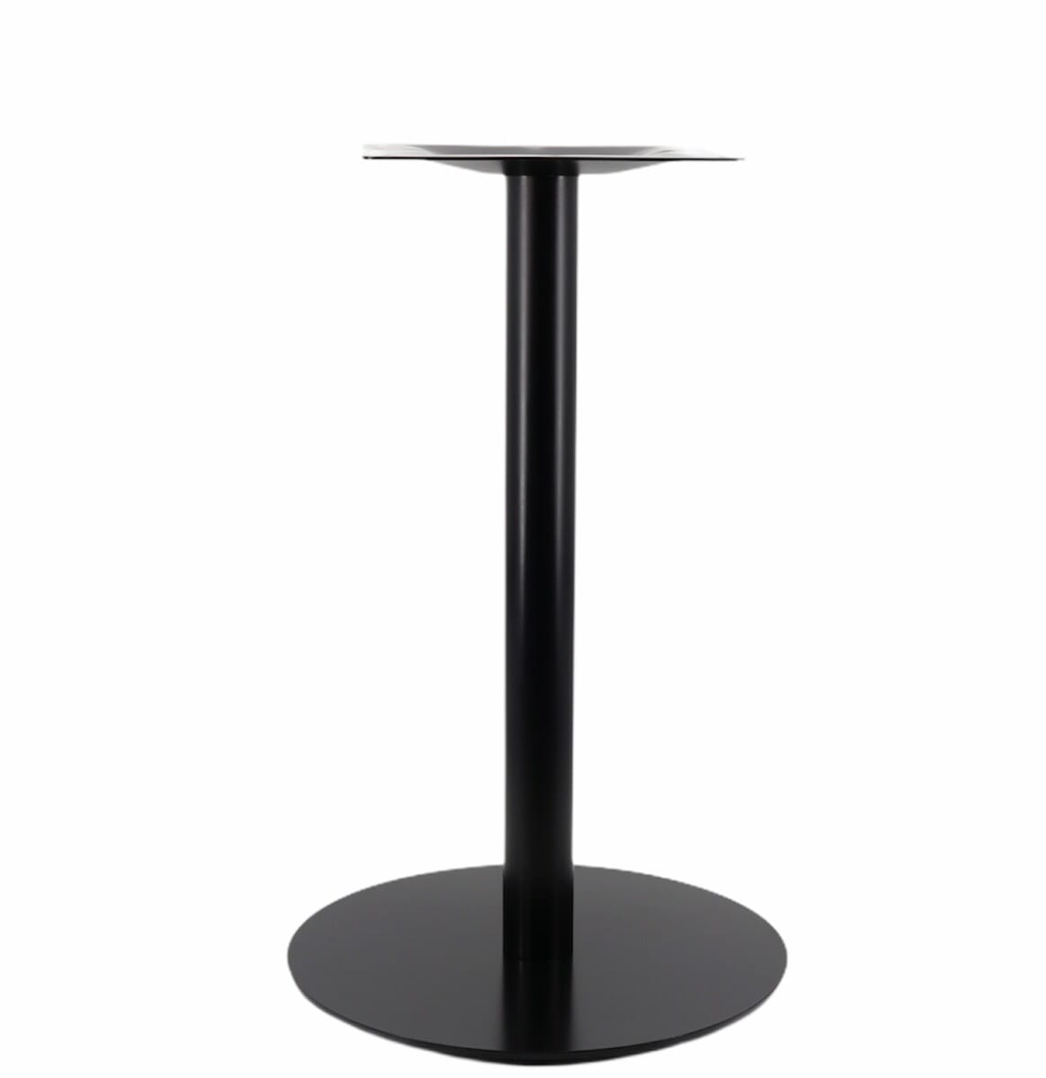 This classic round table base has widespread versatility and appeal with its modern black powder-coated styling. The flat round base and column create an ideal silhouette to maximize leg room without sacrificing stability, and a strong mounting plate assures your diners will have a stable surface for enjoying their meals. This base, available in both standard and bar height, pairs perfectly with many of our table tops and requires only minimal assembly.