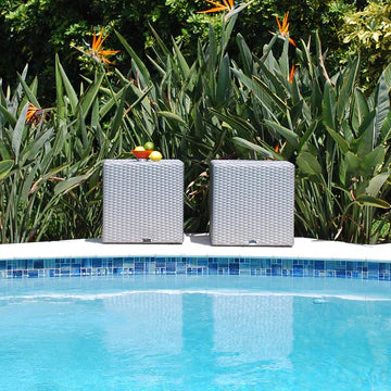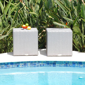 Design, Functionality, Durability and Harmony were the core elements in the design of the Panama Stool. A small and versatile cube which can be matched with any of our collections. Made in lightweight powder-coated aluminum and hand-woven in all-weather wicker that is easy to maintain.