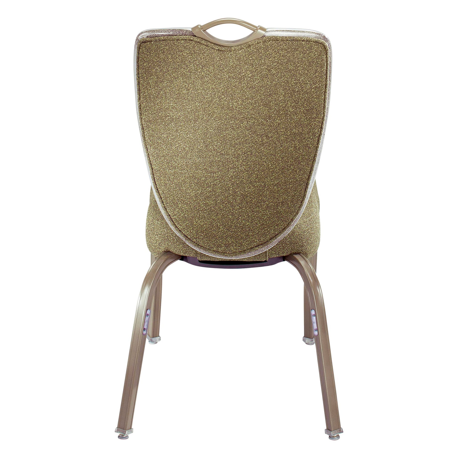 Light weight aluminum banquet stacking chair. Vinyl bumper action back with optional handle.