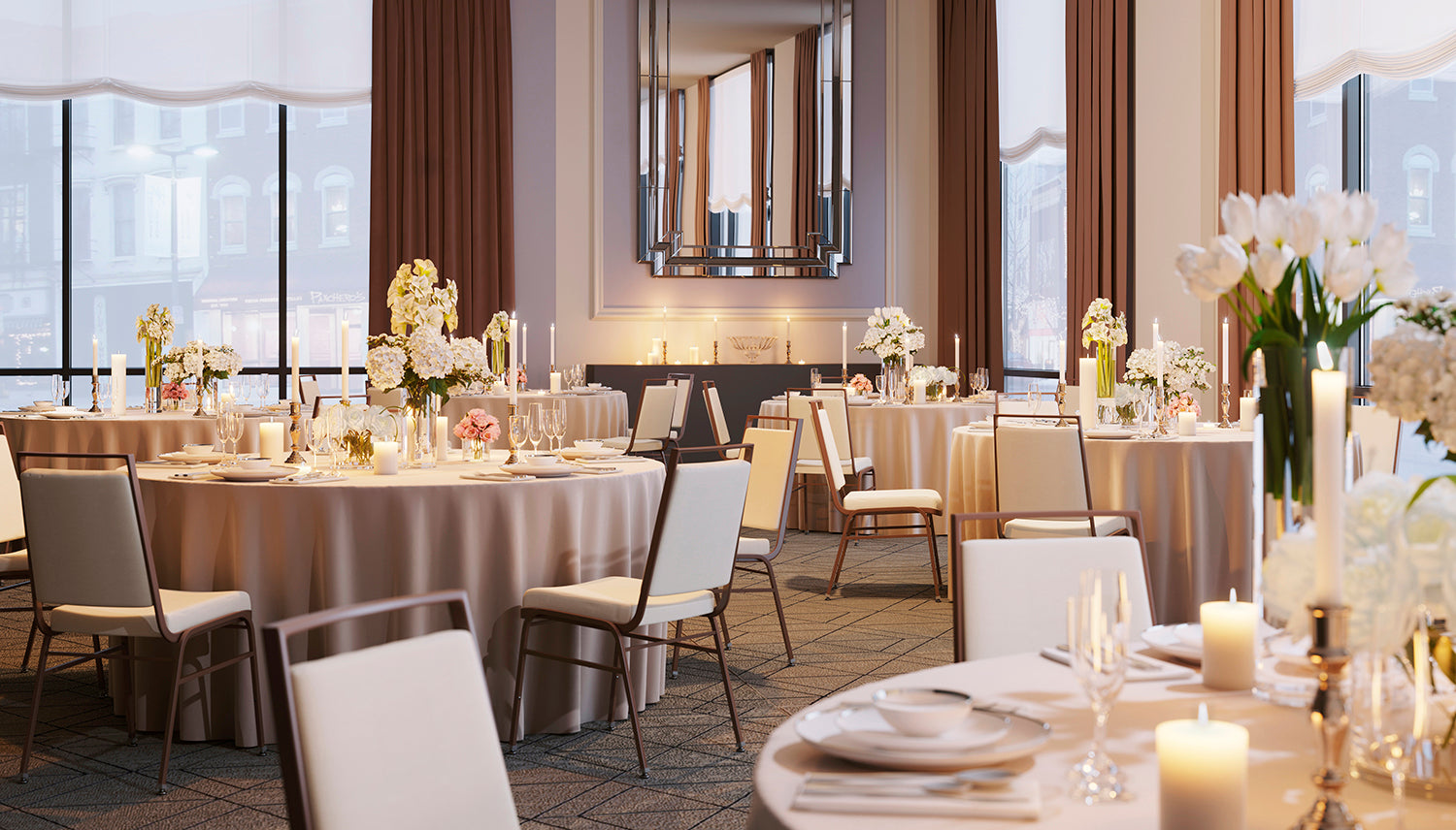 Aluminum Stacking Banquet Chair with sleek, thin oval tubular back design.