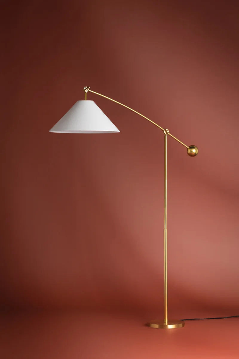 This elegant lighting fixture features a carefully balanced design with subtle asymmetrical details. A small metal accent on one end of the elongated arm complements the clean, white linen shade on the other. The pivoting arm allows for adjustable height and angle, providing flexible, targeted illumination to suit a variety of spaces. Ideal for both floor lamp and chandelier applications, this versatile fixture is perfect for enhancing guest rooms, lobbies, and hospitality environments with refined style and functional lighting.