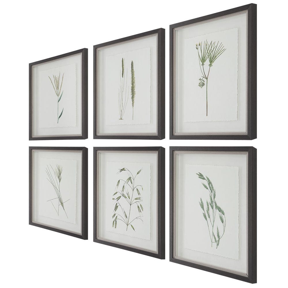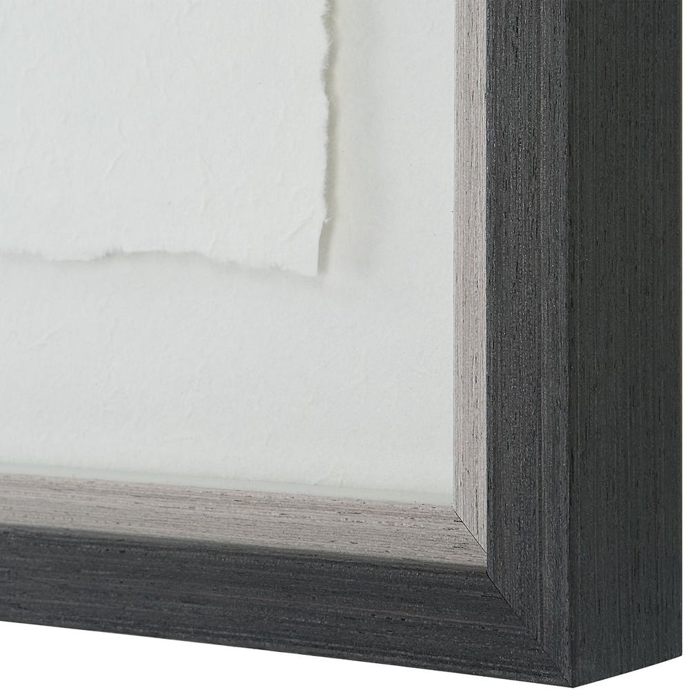 This set of exclusive prints exhibit nature's finest findings printed on textured art paper with delicate deckled edging. Framed shadowbox style, each print is mounted against a textured paper backing in a dark espresso finished frame and rustic gray liner under glass.