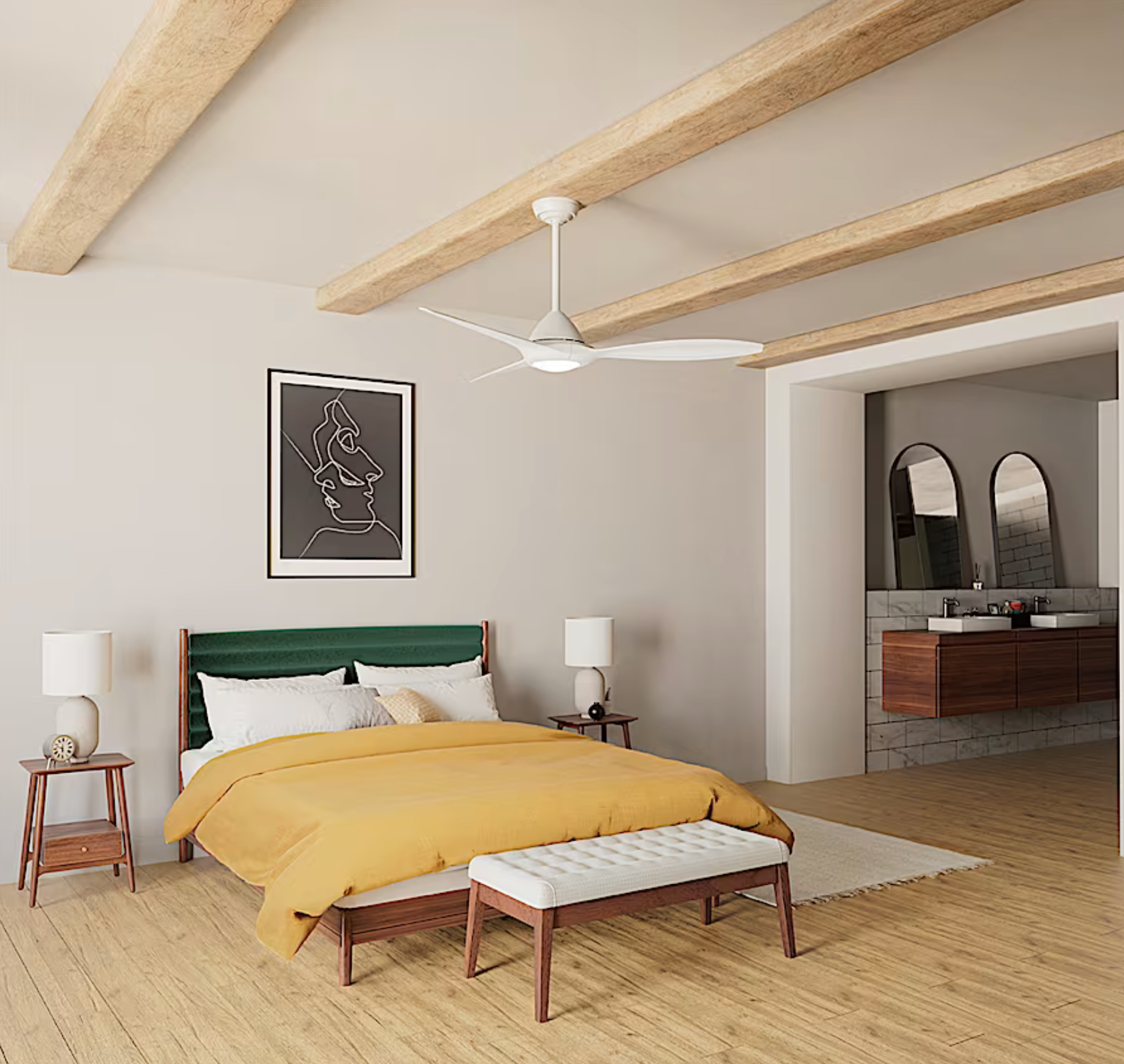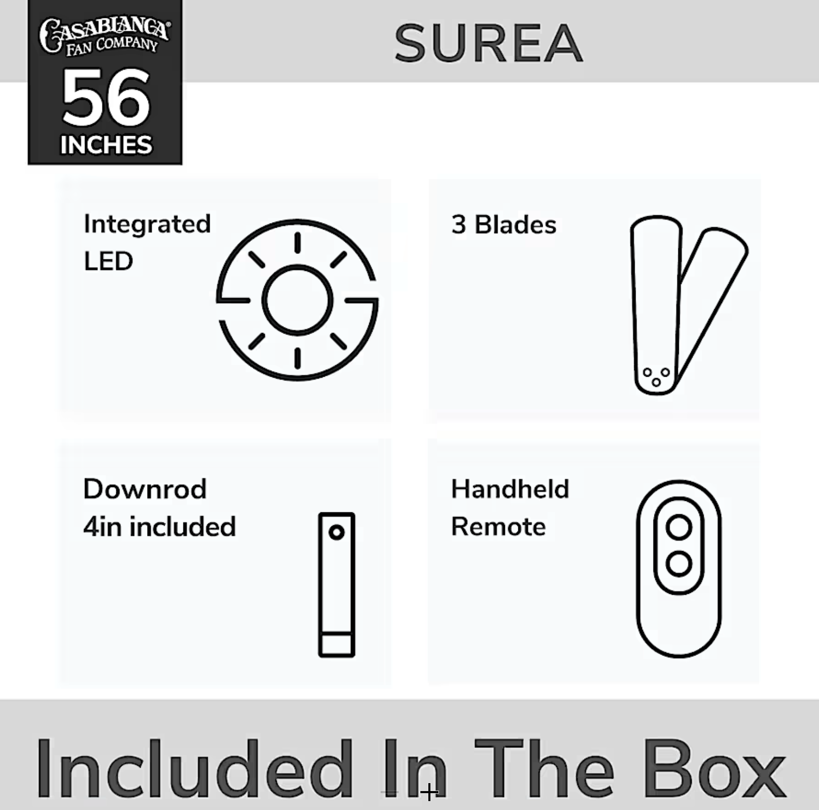 The 56" Surea Outdoor Ceiling Fan brings sleek, modern style together with powerful, energy-efficient performance. Its ENERGY STAR®-rated DC motor and integrated LED light deliver bright, reliable comfort in both residential and hospitality spaces. Damp-rated for covered outdoor use, the Surea is the perfect blend of elegance and modern efficiency for patios, lounges, and contemporary interiors.