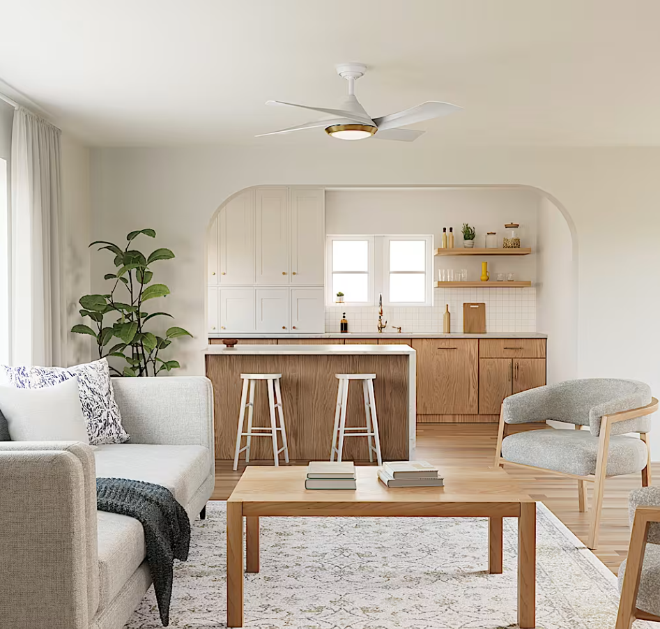 The 52" Vespucci Outdoor Ceiling Fan with LED Light blends modern style, durability, and hospitality-ready comfort. Its damp-rated build suits covered outdoor areas, while the integrated LED light offers adjustable ambiance. Powered by a quiet, efficient DC motor, it delivers strong airflow for a welcoming, comfortable space.
