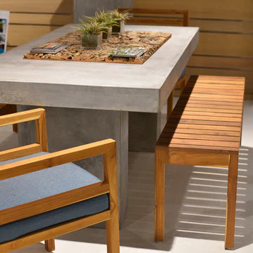 The Cali is an elegant collection of outdoor furniture beautifully hand-crafted in sustainably harvested teak. The result is an eye-catching, instantly likable full collection of Seating, Dining and Sun Lounger that captures the spirit of luxury while extending design language into new heights. The wood in this instant classic will only get more beautiful with time, weathering to a silvery gray.