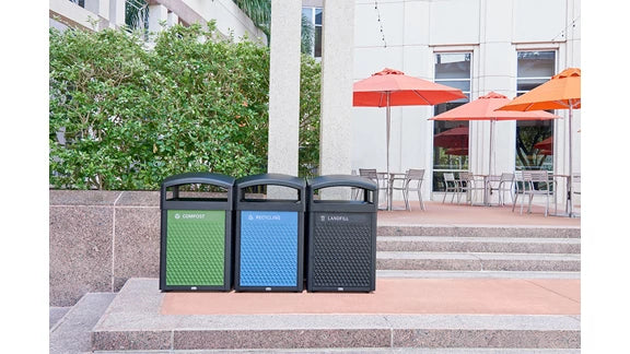 The Medium Landfill / Recycle / Compost Decorative Panels pair with the 35-Gal Landmark Series Containers (sold separately) or 41 Gal Tailor™ Container (sold separately) for a customizable waste solution.